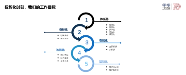 数智化时刻,我们的工作方式是什么?即需要围绕“五化”开展:这五化是指体系化、指标化、数据化、连接化、智能化。