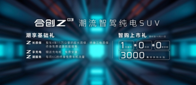 10月18日,潮流智驾纯电SUV合创Z03正式上市,共发布4款车型,售价区间为13.28万元—16.88万元。在以“潮智引领”为主题的上市发布会里,合创汽车CEO杨颖表示,“感谢每一位参与共同设计创造Z03、帮助修订完善Z03的伙伴。借助共创的智慧和力量,合创Z03拥有炫酷的战力美学外观,百变智能实用大空间,以及足够安全的智慧交互与控制。”