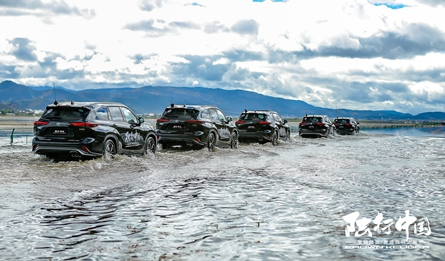纳帕海是香格里拉有名的季节性湖泊,这里有着闻名全国的水上公路。当车辆行进入“水上公路”,皇冠陆放在水中自由驰骋,超5m的车身,也让车队在水中行进稳健,加上宽敞静谧的七座大空间,尽赏“秋水共长天一色”的致美画卷。