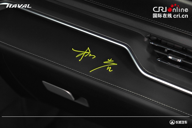 哈弗M6 PLUS柳岩联名版拥有专属的车身颜色——“岩选灰”,这款颜色是由柳岩与哈弗设计师共同完成,充满格调与质感。进入车内,副驾驶仪表板和中央扶手箱位置的柳岩刺绣签名十分引人注目,金黄色的刺绣精致而潇洒,时刻彰显着这款车型独特的“身份”。