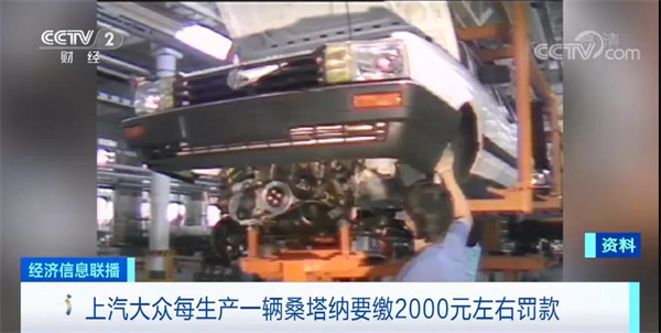 某汽车市场咨询公司总经理 曾志凌: 桑塔纳燃油消耗其实不达标,按现在的双积分政策,看相关数据,桑塔纳车型每一辆车大概产生了-0.4左右的积分,也就是每生产销售一辆桑塔纳,上汽大众要交纳2000元上下的罚款,可以说这个车已经不赚钱。