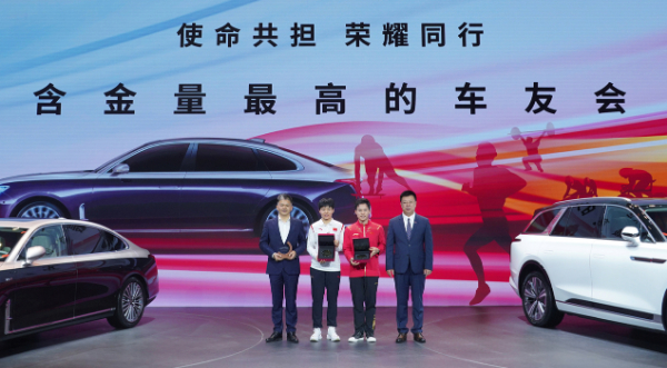 今年8月,新红旗宣布向在东京奥运会上获得奖牌的中国荣耀健儿赠送红旗H9产品及使用权;9月10日开始,在遍及全国的红旗体验中心支持下,荣耀健儿陆续收到H9产品交付、成为新红旗车主,并随即加入红旗车友会、享受产品服务和红旗生态的各项权益。随着越来越多荣耀健儿成为红旗H9车主,红旗车友会被网友称为“含金量最高的车友会”,显示出客户和红旗粉丝对品牌荣耀体验的认可和共鸣。本次发布会上,东京奥运会场地自行车女子团体竞速赛金牌得主——鲍珊菊、以及东京奥运会跳水男子三米板和男子双人三米板金牌得主——谢思埸亲临现场,和同为红旗车主的万达集团代表曾茂军共同接受“红旗H9车友会荣耀勋章”。