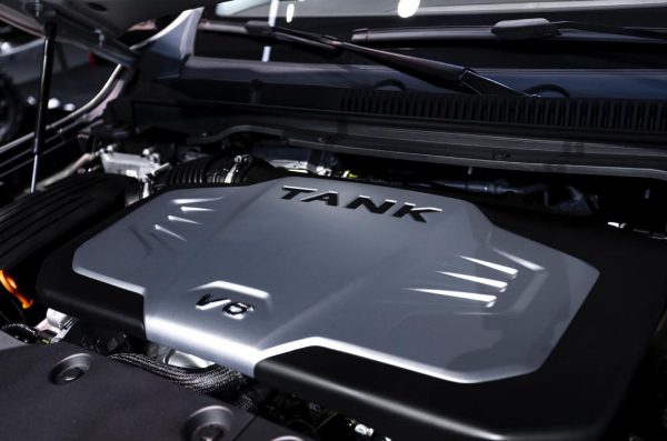 坦克500打造沉浸式的乘坐体验。通过NVH声学包、主动降噪等声学技术。内饰设计采用66个切面的换挡手柄,坦克500采用的非承载式车身结构,车身部位高强度钢板应用比例超过75%,并在四门、底板及车顶等部位增加防撞钢梁。