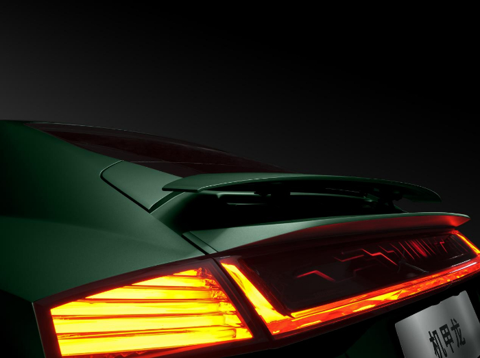 机甲龙尾部最大的吸睛之处是率先搭载Mini-LED外显屏技术的智能尾灯,配上双层动感尾翼,运动性能十足且感观体验瞬间拉满。机甲龙匹配的20英寸暗夜碳黑双五幅轮辋,更是一种标新立异的存在。