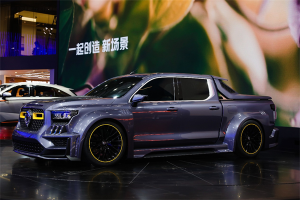 基于全球用户共创的理念,乘用休闲品类也迎来了一位家族新成员,中国首款超跑皮卡概念车全球首秀,炫酷造型吸睛全场。