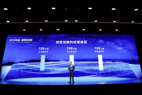 “定位为‘为用户提供优质汽车产品和服务的卓越科技企业’,战略性推进‘东方风起’计划,构建‘一主两翼’事业格局。”东风公司董事长、党委书记竺延风表示,“一主”就是整车业务,“两翼”就是科技板块和服务生态。东风还立下了3个“一百万”目标:到2025年,商用车、自主乘用车和新能源汽车销量分别达到100万辆。