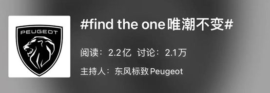 508L 2022款上市发布之际,东风标致还与用户深度互动,一起玩转新媒体,在上市直播的同时,推出508L 2022款#懂我的神操作#抖音挑战赛, 收获了15.9亿次播放,产出小视频超过22.2万条。双十一期间,“标致211周年,惊喜11呈献——新法式 LIVE 直播”,赢得了近百万人点赞。年末时尚话题 #FIND THE ONE 唯潮不变# 微博互动,吸引了2.2亿阅读和2.1万讨论,全方位提升了用户与品牌的互动及用户对品牌的感知。