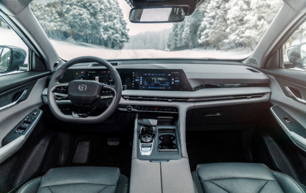 “新科技智慧美学”设计理念还延续到第二代CS75PLUS座舱内部。全系标配双12.3英寸液晶大屏,与智能W-HUD、璀璨星光表皮、氛围灯等科技配置形成的一体交互设计。巨幕全景天窗为用户带来视觉享受。