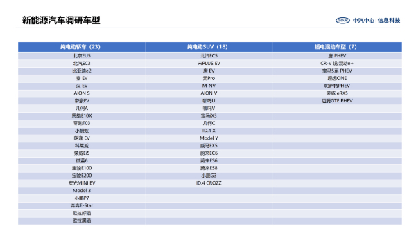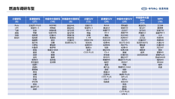 附录:调研车型