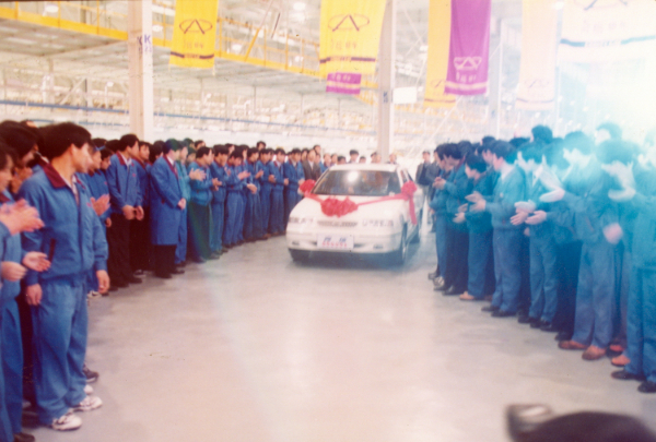 而这一结果又成为继续推动奇瑞人前行的二次动力,1999年12月18日,奇瑞第一辆轿车——00001号“风云”缓缓驶下生产线,奇瑞有了第一辆自己造的车,这在当时的中国自主车企中属绝对个例。