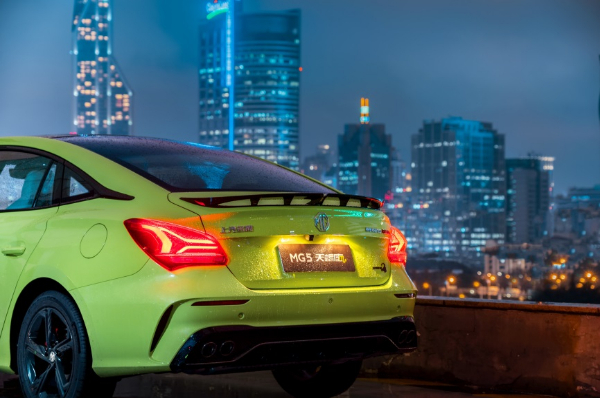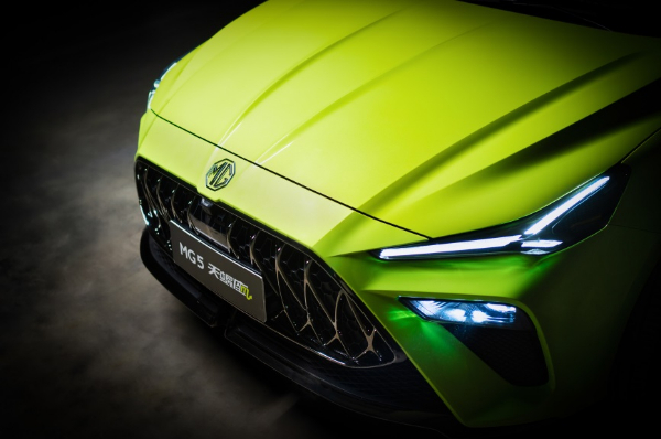 MG5天蝎座与生俱来的气场让人一眼难忘。其前冲下压车头、宽车肩等硬朗设计,配合LED光剑分体式大灯、硬朗的前唇、霸气的机甲面罩等运动造型,成就强劲轿跑。全新激情柠车身色,赚足回头率。