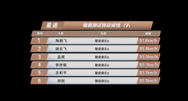 4月17日,星途凌云S正式开启以“天性要强 不负热血”为主题的72小时接力直播挑战赛,在经过一轮轮紧张而刺激的激烈角逐后,星途凌云S首日即创造出85.9km/h的麋鹿测试纪录。