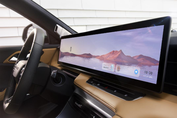 新车的最大的亮点在于其内饰。在这一代的RX5设计中,上汽设计推出了最新洛神系统打造的27寸全景无界滑移屏。打破仪表屏与中控屏的界限,让界面内容贯穿全屏。全景无界滑移屏有智驾模式与智享模式两种屏幕模式。副驾不仅可以享受屏幕的娱乐功能,还可以协助主驾进行一些屏幕和车辆的操作。