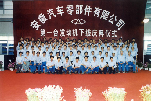图为1999年5月18日,奇瑞第一台发动机下线仪式