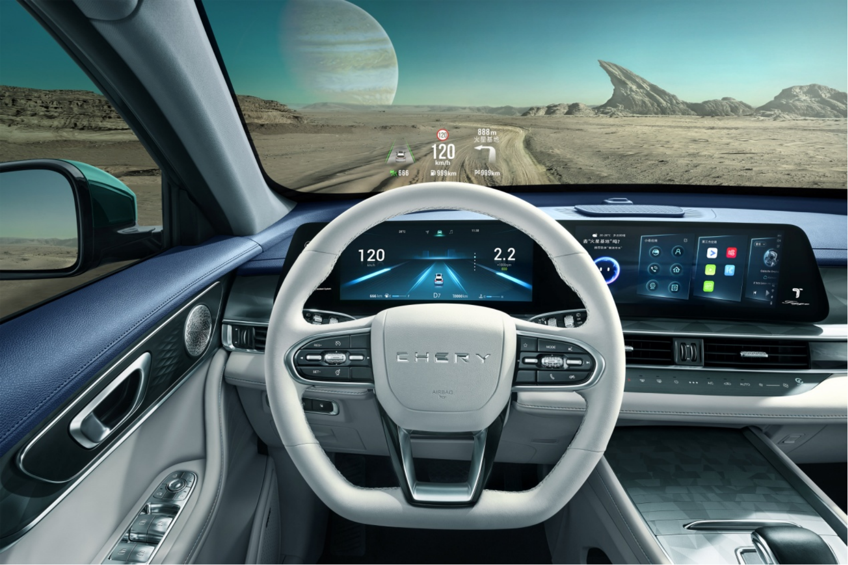 瑞虎8 PRO还配备了奇瑞首发的W-HUD 星际飞行式平视显示功能,能将车速、动态ADAS、导航、电话等多种功能进行显示,让用户只需要平视前方,即可将所需的车辆信息尽收眼底,在大幅提升出行安全性的同时,还让年轻人们提前进入《三体》中的“超信息化社会”。
