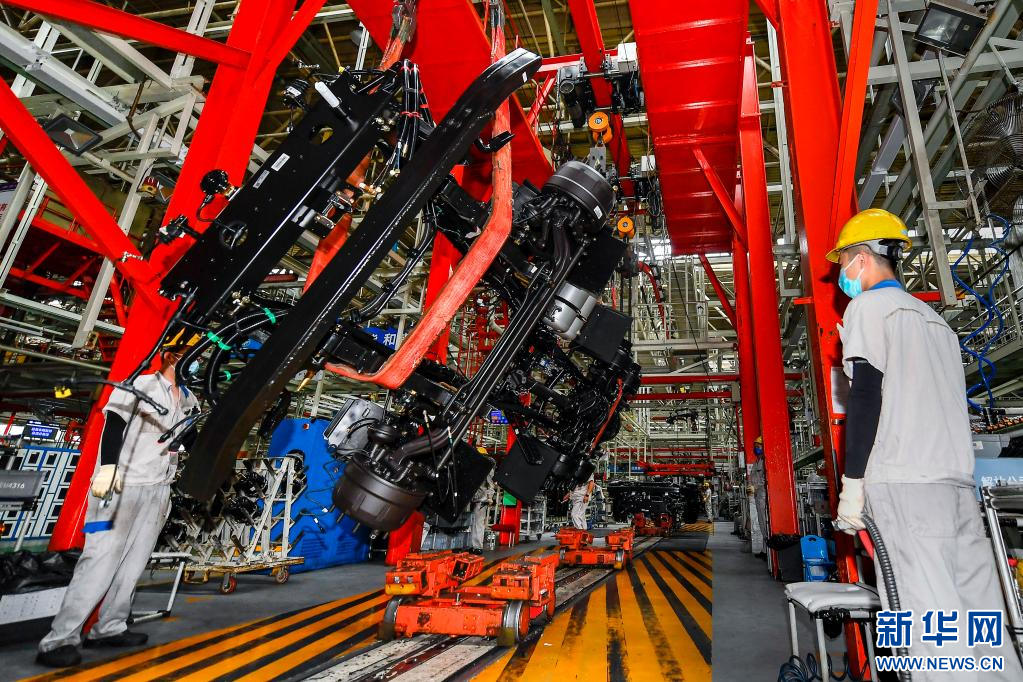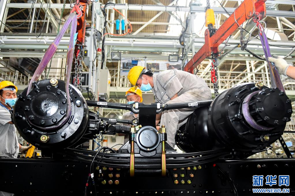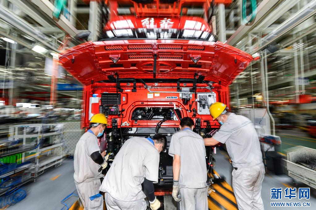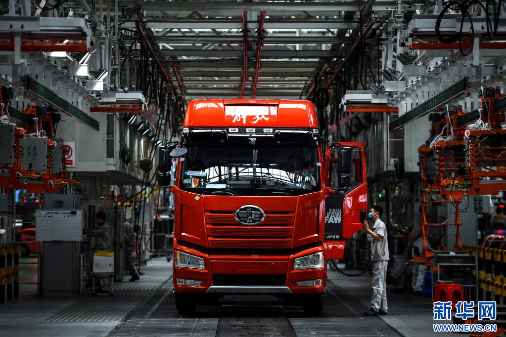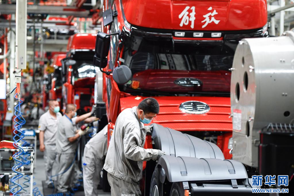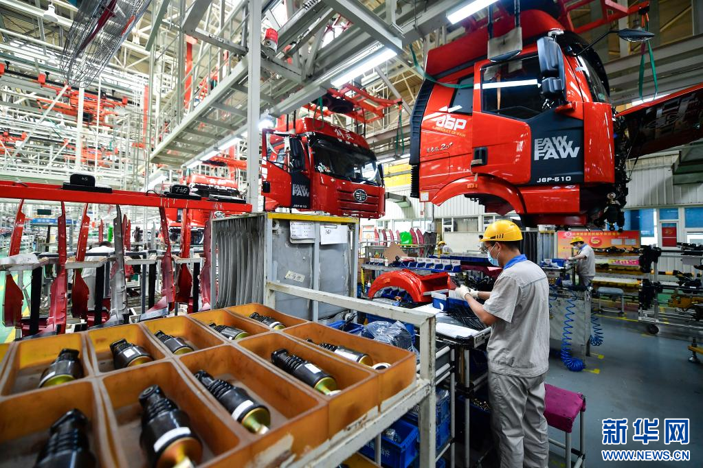 6月15日,工人在位于吉林长春的一汽解放总装车间内装配车辆。新华社记者 许畅 摄pagebreak
