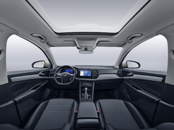 内饰方面,新捷达VS7可选装8英寸真彩液晶数字仪表以及10英寸彩色触控中央液晶屏幕,J-Connect车联网无需手机连接,智能在线服务让人机体验更愉悦。全新拼色软包座椅搭配精致缝线设计,雅致大方,质感十足,驾乘更舒适。在内饰的细节上,VS7也用心设计,门把手处采用了精致的镀铬装饰。