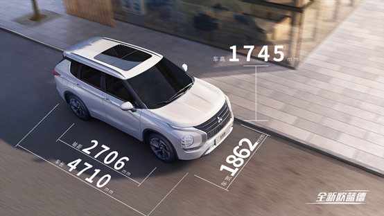 全新欧蓝德的整体造型采用宽阔且大气的新车身比例,将车身长度升级到4710mm,车身宽度升级到1862mm,车身高度升级到1745mm,轴距升级到2706mm。比前代车型更宽、更长的车身比例,为全新欧蓝德营造出一种强烈的存在感,造就刚劲稳重的外观印象,而且这超越同级的车身和轴距尺寸也带来了更优化的乘坐空间,也进一步展现全新欧蓝德全面进化的独特魅力。