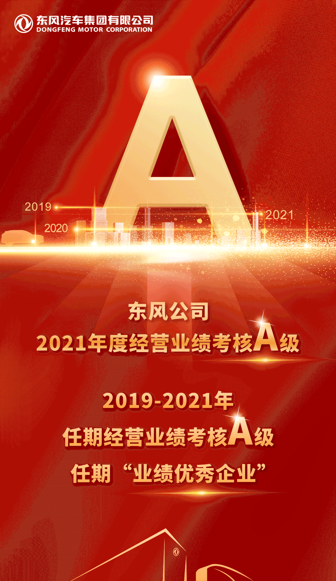 东风公司获评2021年度中央企业负责人经营业绩考核A级企业、2019年-2021年任期中央企业负责人经营业绩考核A级企业,这是东风公司连续三年、连续四个任期考核A级。同时,东风公司还荣获2019-2021年任期“业绩优秀企业”称号。