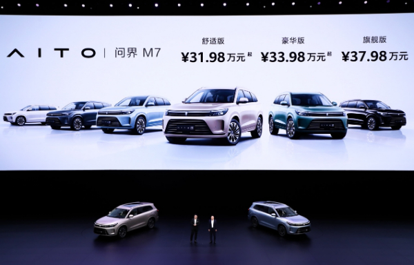 此次上市的M7,是AITO品牌第二款产品,售价31.98万-37.98万元。作为一款大型六座电动SUV,在舒适性和豪华性上展现出技术优势,鸿蒙智能座舱让M7的运用场景更加多元化。赛力斯汽车与华为的跨界融合,从产品层面来看,已经更加深入。