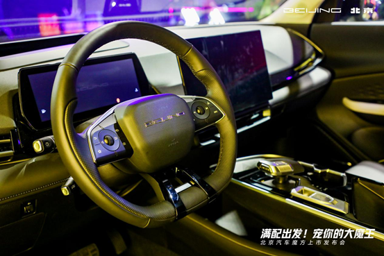 外观方面,北京汽车魔方采用光影雕塑曲面设计,搭配星光飞翼LED日行灯、闪烁互动AI交互灯。内饰方面,星际引擎内饰配合大面积软包材质以及3D光效纹理氛围灯,将氛围感拉满,打开车门就是元宇宙科幻空间。