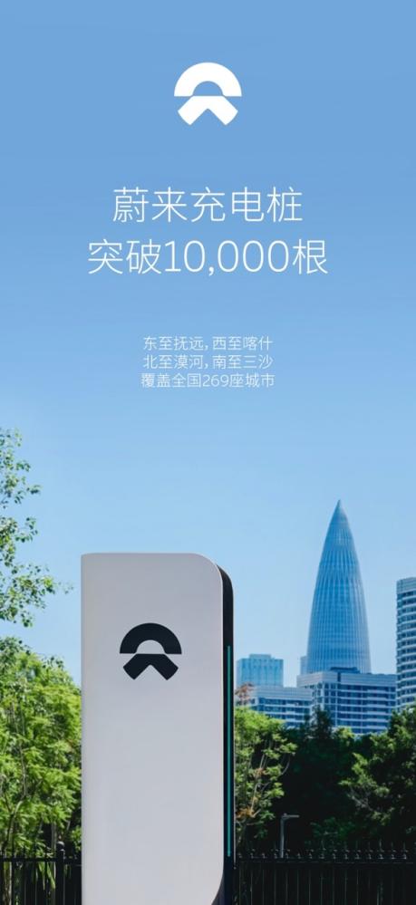7月29日,随着蔚来深圳曙光科技大厦超充站投入运营,全国蔚来充电桩总数已突破一万根,覆盖269座城市。