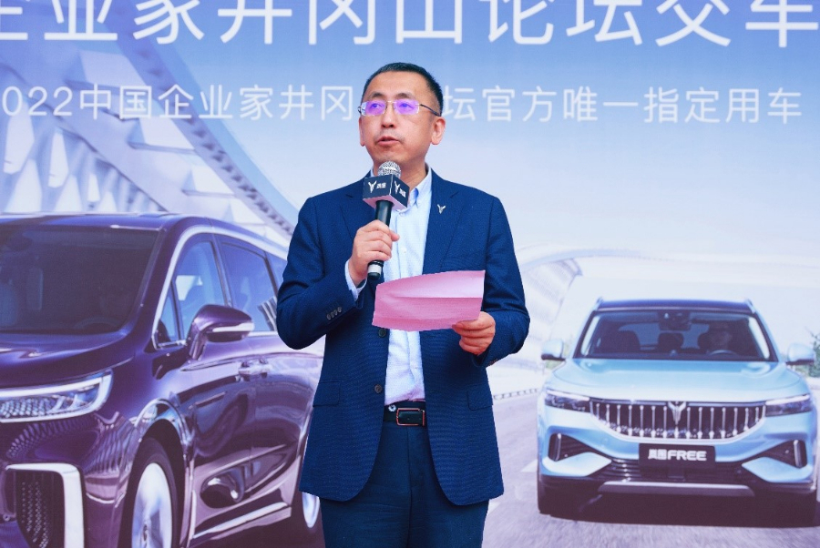 图片二:2022中国企业家井冈山论坛唯一指定用车交车仪式现场,岚图汽车科技有限公司CEO卢放致辞