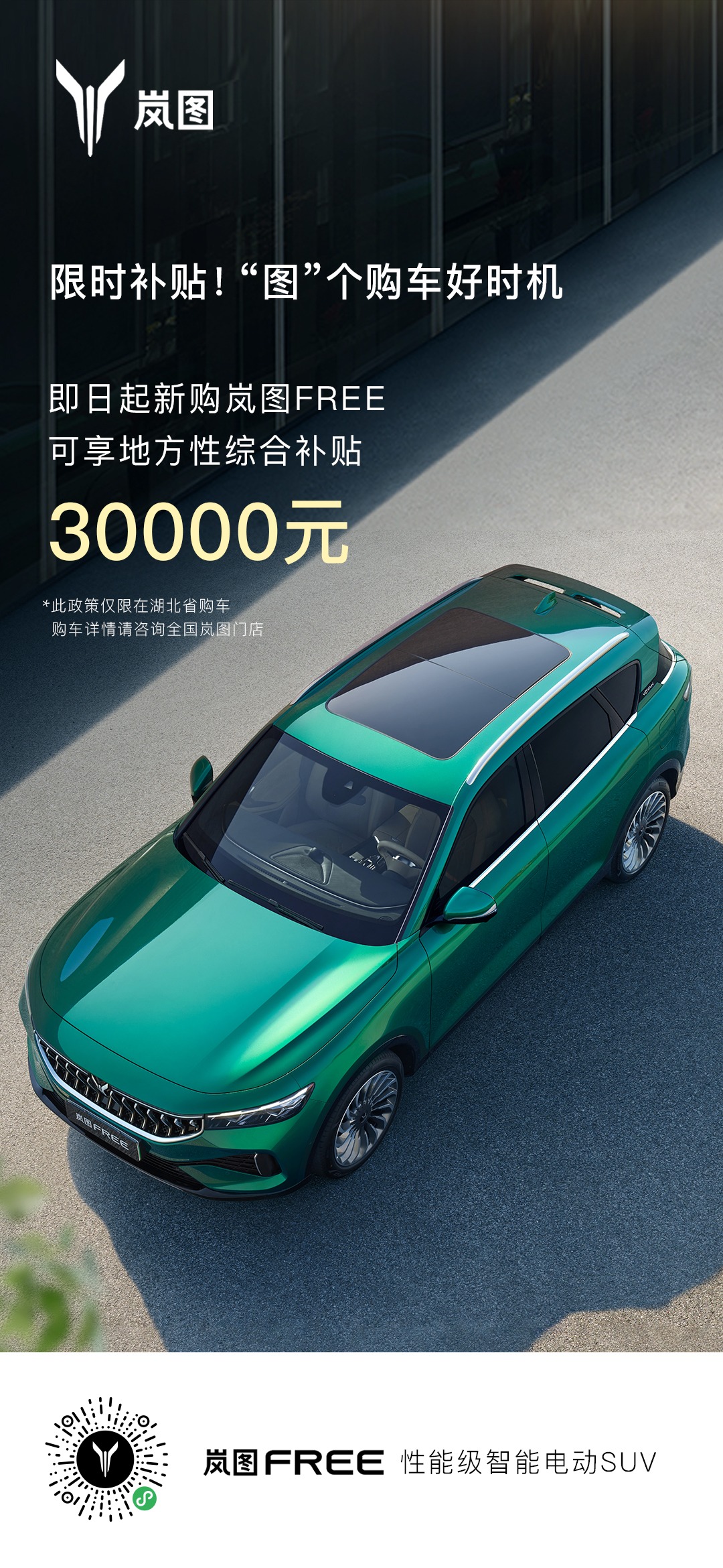 限时补贴来袭 新购岚图FREE 惠享地方性综合补贴30000元
