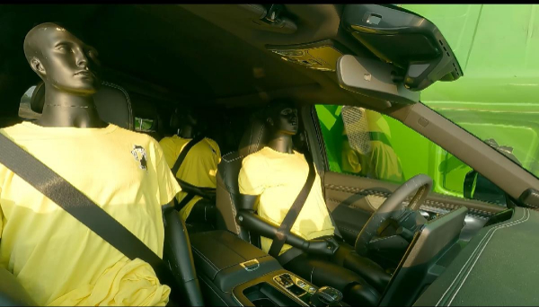 本次试验选取了自重13.5吨,长8.145米的标准货车,并满载13.5吨冶金煤,整体重量达到27吨。为了更客观呈现驾驶舱挤压情况,测试人员在全新第二代GS8驾驶舱的前排,二排及三排均放置了175cm仿生假人乘客,以让此次挑战具有参考价值。
