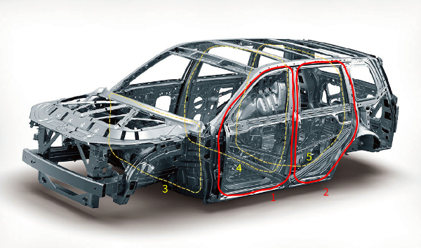 1:前门环,2:后门环,3:A柱环笼,4:B柱环笼,5:C柱环笼