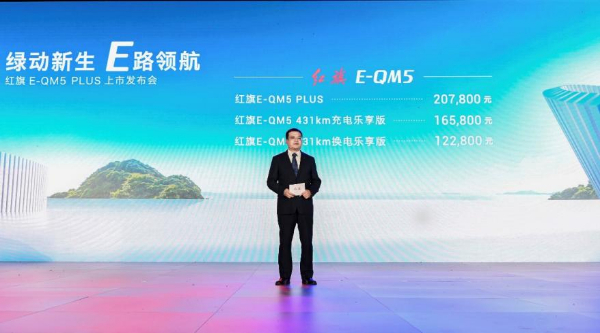 发布会上,一汽红旗汽车销售有限公司常务副总经理肖肖宣布红旗E-QM5 PLUS正式上市,并公布三款车型的价格,其中,红旗E-QM5 PLUS售价为20.78万元,红旗E-QM5 431km充电乐享版售价为16.58万元、红旗E-QM5 431km换电乐享版售价为12.28万元。