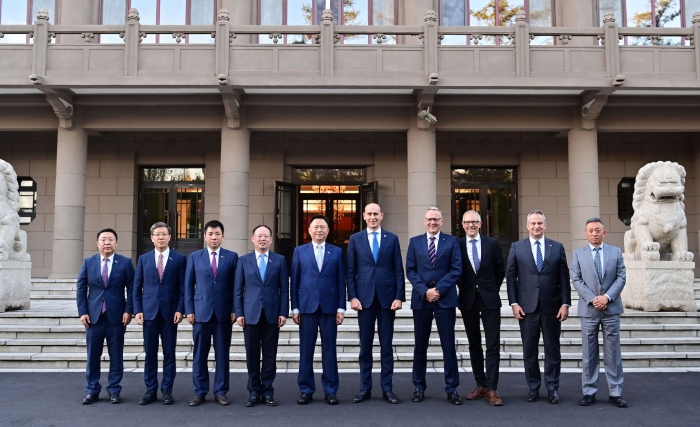 贝瑞德一行了解了中国一汽在电动化、智能网联化、驾乘体验化及研究前瞻化等领域取得的先进技术成果。随后,中国一汽和大众集团股东召开小范围座谈,针对未来合作等话题进行研讨。