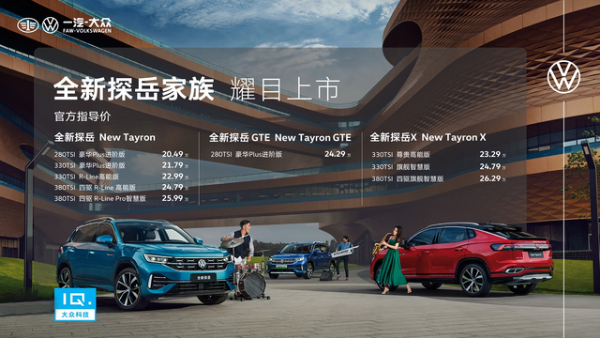 近日,一汽-大众全新探岳家族正式上市,包括全新探岳、探岳X和探岳GTE三种不同的版本。其中,全新探岳将推出5款配置车型,售价区间为20.49万元-25.99万元。全新探岳X将推出3款配置车型,售价区间为23.29万元-26.29万元。全新探岳GTE将推出1款配置车型,售价为24.29万元。