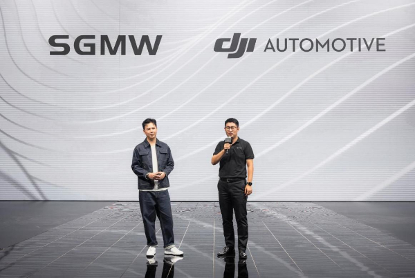 (KiWi首席技术官赵奕凡和大疆车载战略总监何鹏讲解“灵犀智驾系统”)