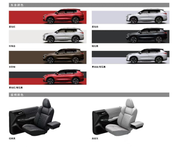 为满足用户对个性的追求,全新欧蓝德对车身色彩进行全面升级。除了珍珠白、曜石黑、金砂棕三种经典车色,还将提供星钻红、星钻白两种星钻动感车色以及星钻白/曜石黑、星钻红/曜石黑两种双色拼色车身。内饰方面也将提供经典黑、高级灰2种配色。