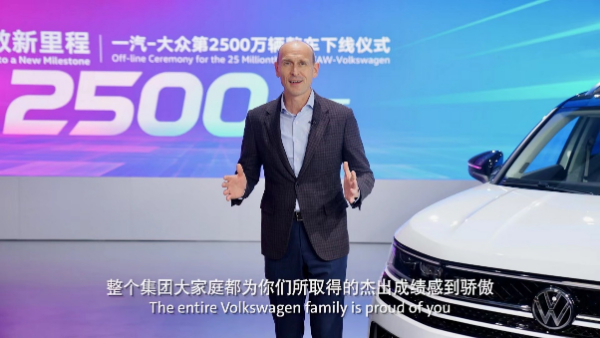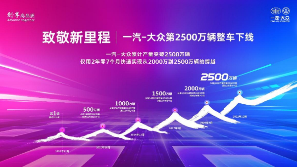 一汽-大众快速达成2500万辆里程碑,彰显出其深耕中国市场31年、砥砺前行的奋进之心、不断超越的进取之心。发展成果赢得了中德股东双方的高度评价。