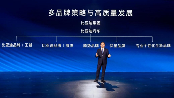 未来,比亚迪将形成比亚迪品牌(王朝、海洋)、腾势品牌、仰望品牌、专业个性化全新品牌矩阵,覆盖从家用到豪华、从大众到个性化,满足用户多方位、全场景用车需求。