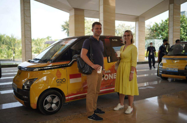作为G20峰会的官方用车,300台五菱Air ev车身印有G20标识和“塑造清洁明天”标语,灵动小巧,往来穿梭于巴厘岛机场和峰会代表团驻地以及驻地与会场之间,为各国代表团和组委会提供绿色出行服务。