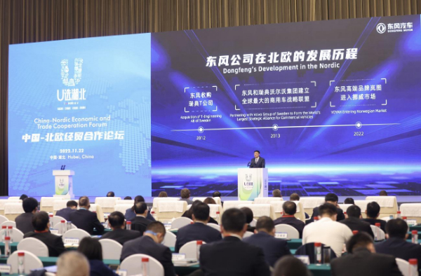 东风汽车集团有限公司(以下简称东风公司)党委常委、副总经理尤峥出席并发表《新格局 新发展 开启合作新征程》主题演讲,分享东风公司在新能源转型发展、深化与北欧合作方面的思考和实践。
