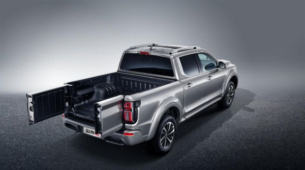 采用后尾门对开+平开设计。对开设计,更加贴近车箱内部,提升车箱储物的便利性;兼顾尾门平开设计,延展工作台功能,实用、好玩,而且可靠。全系配备电子锁,电控开启,后续用户进行车箱封闭改装安全性更好、更便捷。此外,全系标配流媒体内后视镜,改善皮卡后视野,让后车箱可以放心改装,不必担心加装设备后视野受影响。