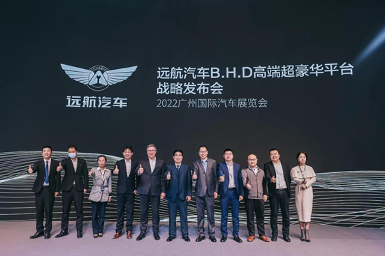 第二十届广州国际汽车展览会上,作为大运集团旗下、全新高端智能新能源汽车品牌,远航汽车携手博世、华为、阿里等发布了高端豪华纯电平台——B.H.D。同时,远航汽车携远航Y6、远航Y7两款豪华轿车,远航H8、远航H9两款豪华SUV亮相。