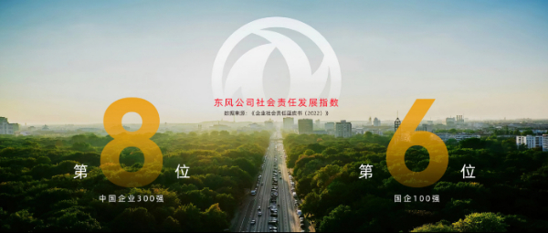 东风公司始终坚持把社会责任全面融入企业发展战略、企业生产经营和企业文化,扎实按照东风社会责任“润”计划3.0的整体部署,在抗震救灾、乡村振兴、绿色环保、人才培养等多方面全力施为。2022年 11月,中国社科院等单位联合发布的《企业社会责任蓝皮书(2022)》显示,东风公司2022年社会责任发展指数位列中国企业300强第8名,国有企业100强第6名,创历史最好水平。凭借在社会责任领域的不断创新与成功实践,东风公司还荣获“责任金牛奖”“责任引领奖”,被授予 “2022年度中国益公司”“公益慈善杰出企业”,并入选“2022年度汽车行业公益典范”。