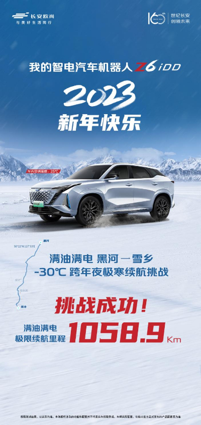 欧尚汽车携手用户在东北雪乡共同度过了2022年最后一天,欧尚Z6 iDD在零下30度的环境下行驶1058.9公里挑战极寒超长续航。