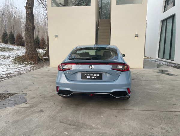 车身后部,型格HATCHBACK e:HEV的掀背造型个性鲜明。顶配车型使用了双出镀铬排气,看起来则更为运动。