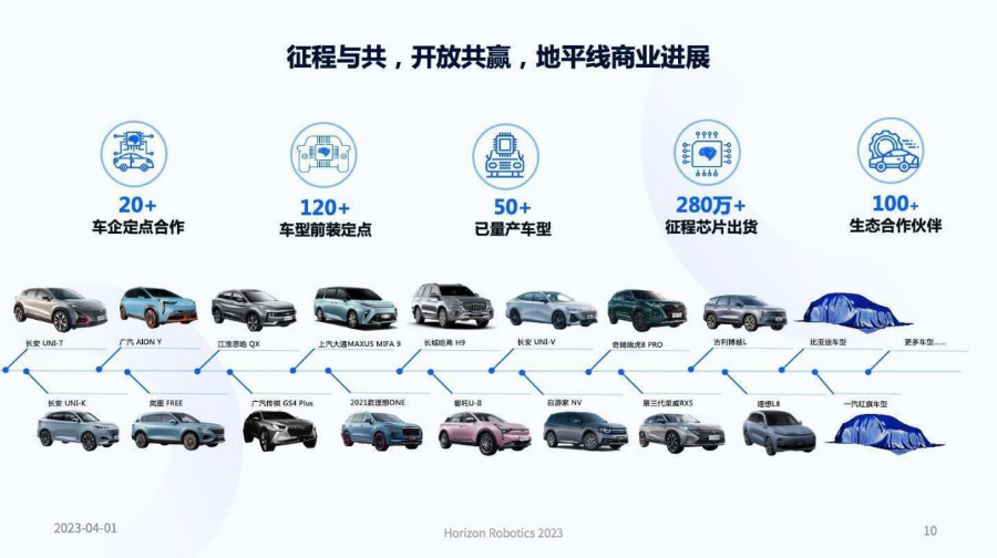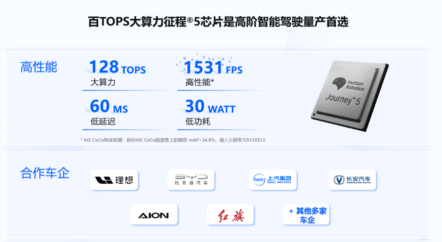 余凯介绍,过去一年,地平线持续取得商业进展,现已定点量产了 50 多款车型,前装定点有 120 多款车型,车规级自动驾驶芯片的出货量接近 300 万片,其中,征程 5 芯片也成为超过100T算力的量产大算力芯片。地平线取得了与一系列标杆车型、标杆车企的量产项目,后续将会有更多国际合作取得突破。