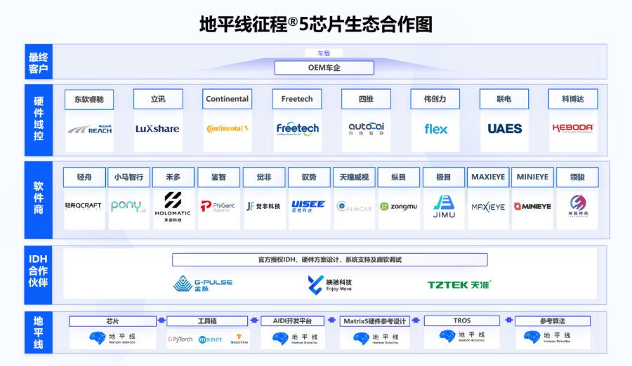 地平线与软件商、硬件域控、 IDH 合作伙伴打造了一个全方位的智能驾驶的计算生态。余凯说,“我们认为如果不能够去建造基于我们自己的计算架构之上的软件生态,那么未来的创新主动权就不会掌握在我们的自主整车企业手里,包括智能电动车的创新主动权。”