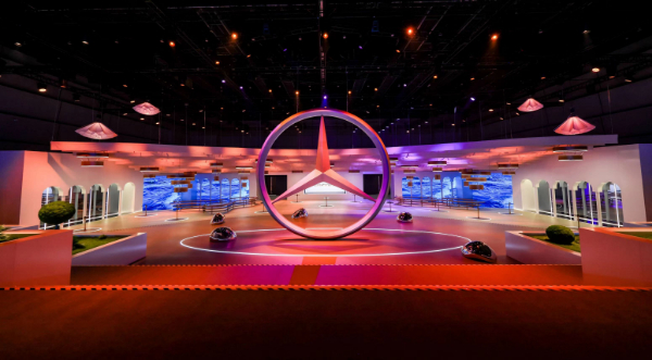 品牌之夜现场,高达8米的三叉星徽矗立于场地中央,表达梅赛德斯-奔驰推动人类出行发展的长久允诺,更彰显“打造最令人向往的汽车”的不懈追求。在“2039愿景”的指引下,为品牌赋予更多可持续豪华的内涵。现场海洋、陆地与天空的设计元素,正昭示着人、科技与自然和谐共进、生生不息的美好未来。