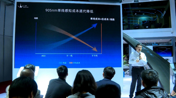“北醒应龙”平台的硬件架构系统中,采用了阵列收发系统和2D扫描,因此发射器数量仅需1D扫描的三十二分之一,接收器仅需八分之一。从根本上解决了产品感知力升级的成本限制难题,使得产品成本下降具备技术支撑。北醒更独创性地提出了“单线成本”指标,即总成本除以线数。基于“北醒应龙”激光雷达平台,性能会逐年提升,而单线成本会急速下降。李远表示,北醒新一代的阵列收发系统搭配高精2D扫描系统,成就了最佳成本组合方案,成功解决了高线数性能和成本之间的矛盾,使激光雷达产品的商业化量产成为可能。