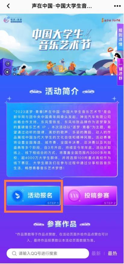 QQ小世界内搜索“中国大学生音乐艺术节”即可搜索到活动页面。