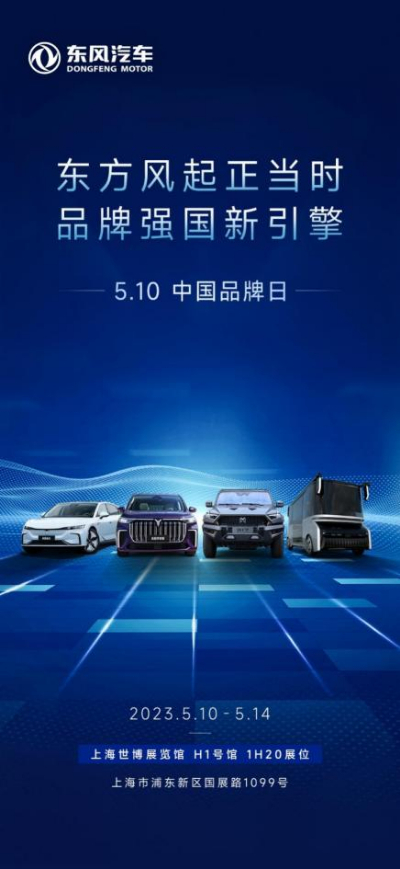 中国品牌,世界共享!5月10日至14日,由国家发展改革委联合中宣部、工业和信息化部、农业农村部、商务部、国务院国资委、国家市场监管总局、国家知识产权局和上海市人民政府举办的2023年中国品牌日活动将在上海世博展览馆举行。东风汽车集团有限公司(以下简称东风公司)将首次参与中国品牌日相关活动,带来最新的新能源车型以及众多科技创新成果,展现东风雄厚的品牌实力和扎实的技术积淀。